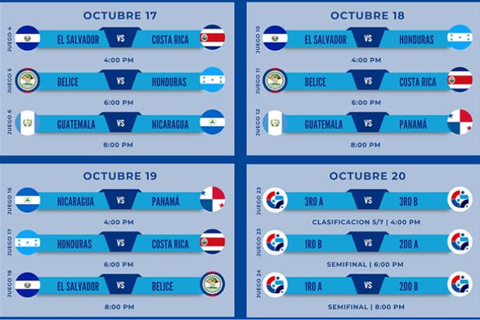 Honduras estará enfrentando en su debut a Belice el 17 de octubre, luego jugará ante Panamá el 18 de octubre y finalizará la fase de grupos enfrentando a Guatemala el 19 de octubre.